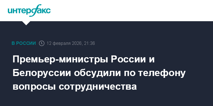 Москва. 12 февраля. INTERFAX.RU - Премьер-министр России Михаил Мишустин обсудил с премьер-министром Белоруссии Александром Турчиным вопросы двустороннего взаимодействия и ход реализации совместных экономических проектов, сообщила пресс-служба российского правительства.