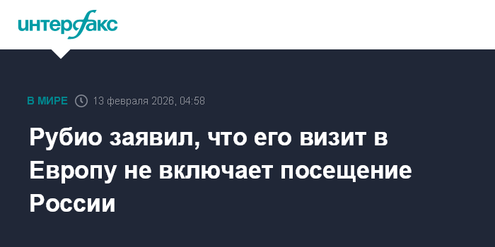 Москва. 13 февраля. INTERFAX.RU - Госсекретарь США Марко Рубио заявил, что в ходе своей поездки в Европу планирует посетить Германию, Венгрию и Словакию, визит в Россию в его планы на этот раз не входит.
