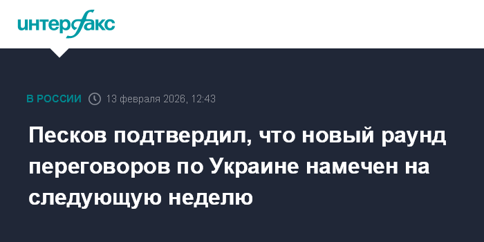 Москва. 13 февраля. INTERFAX.RU - Очередной раунд переговоров по Украине запланирован на следующую неделю, подтвердил пресс-секретарь президента РФ Дмитрий Песков.