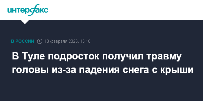 Москва. 13 февраля. INTERFAX.RU - В Туле подростку на голову упала наледь с крыши, он получил травму головы, по факту проводится доследственная проверка, сообщили в управлении СКР по Тульской области.