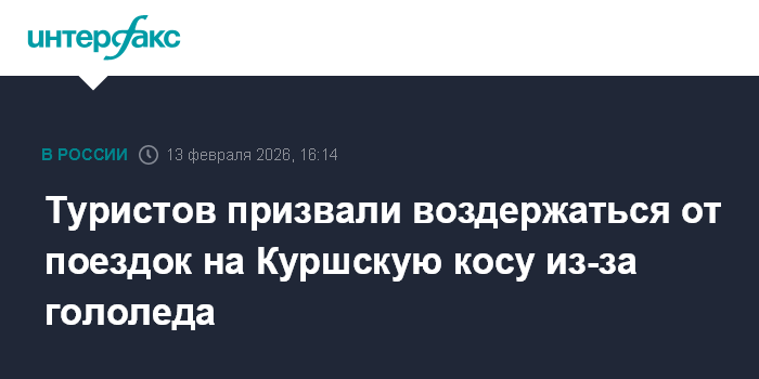 Москва. 13 февраля. INTERFAX.RU - Администрация национального парка "Куршская коса" (Калининградская область) просит воздержаться от поездок на особо охраняемую территорию из-за гололеда, сообщает пресс-служба учреждения.