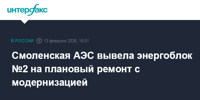 "12 февраля 2026 года в соответствии с годовым графиком ремонтной кампании, утвержденным Концерном "Росэнергоатом", энергоблок №2 Смоленской АЭС был выведен в капитальный ремонт с внутриреакторным контролем и проведением работ по управлению ресурсными характеристиками реактора", - говорится в сообщении.