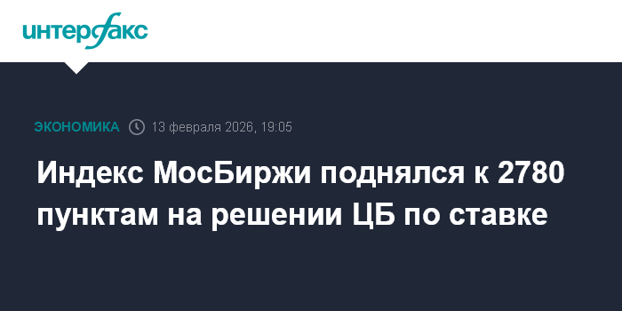 Москва. 13 февраля. INTERFAX.RU - Российский рынок акций в пятницу подрос после решения Банка России снизить ключевую ставку на 0,5 процентного пункта до 15,5% годовых и смягчения сигнала регулятора относительно дальнейшей ДКП; также позитивом стали новости о следующем раунде трехсторонних переговоров по украинскому урегулированию (пройдут 17-18 февраля).