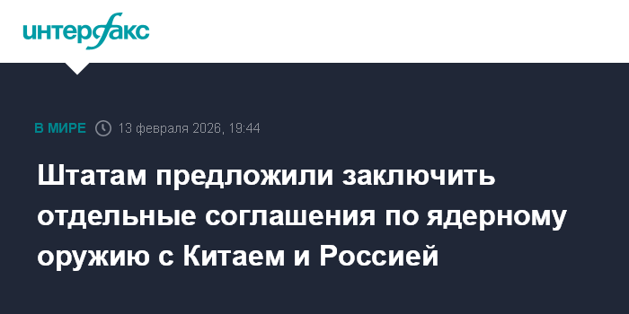 Москва. 13 февраля. INTERFAX.RU - Соединенным Штатам стоит заключить два отдельных соглашения по ядерному оружию - с Китаем и Россией, заявила на Мюнхенской конференции по безопасности бывшая замгоссекретаря США Роуз Гетемюллер.