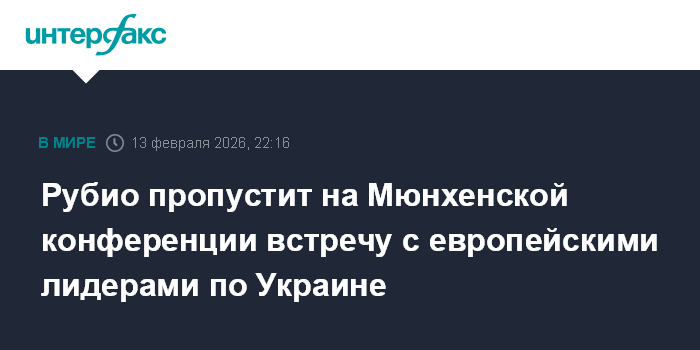Москва. 13 февраля. INTERFAX.RU - Госсекретарь США Марко Рубио в ходе Мюнхенской конференции по безопасности не будет участвовать в коллективной встрече с рядом европейских лидеров, темой которой должен был стать украинский кризис, сообщает в пятницу Financial Times (FT) со ссылкой на источник.