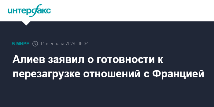 Москва. 14 февраля. INTERFAX.RU - Баку и Париж готовы к перезагрузке двусторонних отношений, считает президент Азербайджана Ильхам Алиев.
