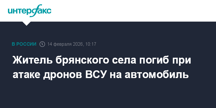 Москва. 14 февраля. INTERFAX.RU - Губернатор Брянской области Александр Богомаз сообщил об одном погибшем при ударе дронов-камикадзе на гражданский автомобиль в Стародубском районе.