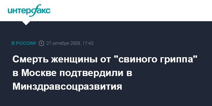Москва. 27 октября. INTERFAX.RU - В Минздравсоцразвития РФ подтверждают информацию департамента здравоохранения Москвы о первом случае смерти от гриппа A/H1N1 в столице.
