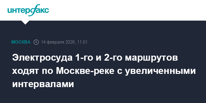 Москва. 14 февраля. INTERFAX.RU - Интервалы движения судов речного электротранспорта увеличены на 1-м и 2-м маршрутах из-за сложной ледовой обстановки, сообщили в департаменте транспорта Москвы.