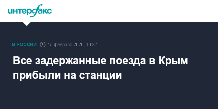 Москва. 15 февраля. INTERFAX.RU - Все задержанные по направлению Крыма поезда прибыли на станции назначения, сообщил "Гранд Сервис Экспресс" (ГСЭ, оператор железнодорожных пассажирских перевозок в Крым и Севастополь) в воскресенье.