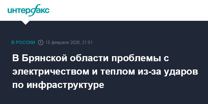 Москва. 15 февраля. INTERFAX.RU - Губернатор Брянской области Александр Богомаз сообщил о проблемах в электро- и теплоснабжении в регионе из-за атак ВСУ.