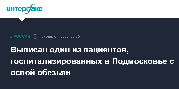 Москва. 15 февраля. INTERFAX.RU - Первый пациент, который был госпитализирован в начале февраля в Домодедовскую больницу с оспой обезьян, выписан.