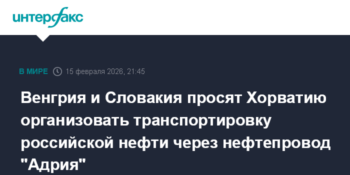Москва. 15 февраля. INTERFAX.RU - Венгрия и Словакия просят Хорватию организовать транзит российской нефти по хорватской территории.