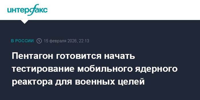 Москва. 15 февраля. INTERFAX.RU - Пентагон во взаимодействии с Минэнерго США собирается начать тестирование компактного мобильного ядерного реактора, разрабатываемого в военных целях, следует из данных американского военного ведомства.