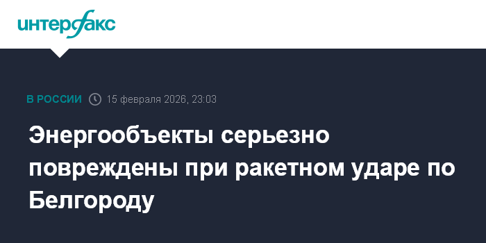 Москва. 15 февраля. INTERFAX.RU - Город Белгород и Белгородский округ подверглись массированному обстрелу со стороны ВСУ, есть повреждения энергообъектов, сообщил губернатор Вячеслав Гладков.