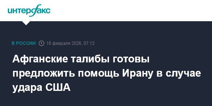 Москва. 16 февраля. INTERFAX.RU - Находящееся у власти в Афганистане движение "Талибан" готово оказать помощь и содействие Ирану в случае американского удара по Исламской Республике, однако не намерено участвовать в войне с США, пишет The Jerusalem Post.
