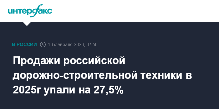 Москва. 16 февраля. INTERFAX.RU - Отгрузки отечественной дорожно-строительной техники на внутренний рынок РФ в 2025 году сократились на 27,5%, до 54,7 млрд рублей, подсчитали в Российской ассоциации производителей специализированной техники и оборудования (Росспецмаш).