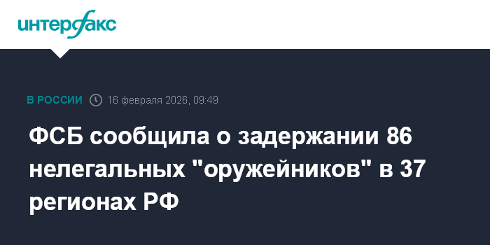 Москва. 16 февраля. INTERFAX.RU - ФСБ сообщила о задержании в декабре и январе 86 человек, причастных к незаконному обороту оружия в 37 субъектах РФ, прекращена работа 19 подпольных мастерских по переделке оружия.
