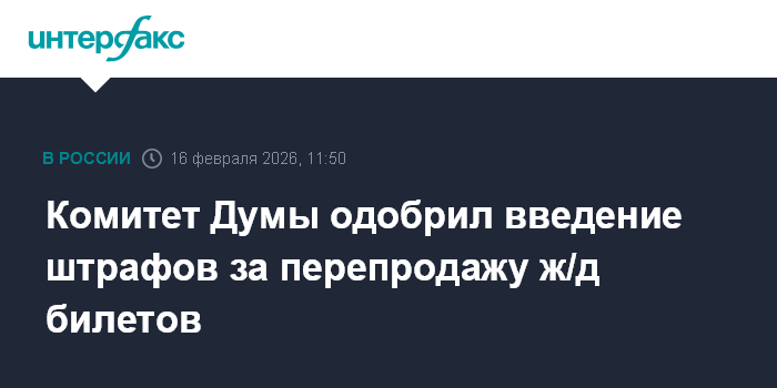 Москва. 16 февраля. INTERFAX.RU - Комитет Госдумы по госстроительству и законодательству рекомендовал принять законопроект № 1049987-8, направленный на пресечение неправомерных действий, связанных с покупкой билетов на поезда дальнего следования и их дальнейшей реализацией "перекупщиками" на торговых площадках.