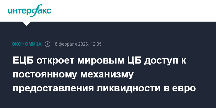 Москва. 16 февраля. INTERFAX.RU - Европейский центральный банк решил расширить доступ к своему постоянному механизму предоставления ликвидности центробанкам, стремясь усилить международную роль евро.