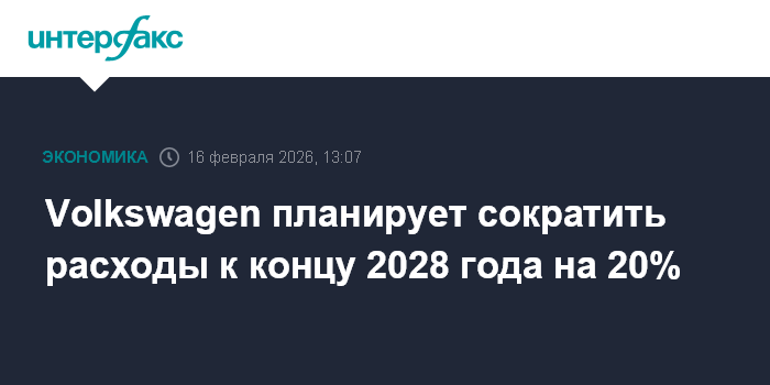 Москва. 16 февраля. INTERFAX.RU - Автоконцерн Volkswagen планирует сократить расходы по всем брендам на 20% к концу 2028 года, сообщил немецкий деловой журнал Manager Magazin.