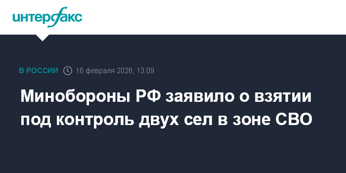Москва. 16 февраля. INTERFAX.RU - Вооруженные силы России взяли под контроль два села - Покровка в Сумской области и Миньковка в ДНР, сообщило министерство обороны РФ в понедельник.