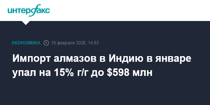 Москва. 16 февраля. INTERFAX.RU - Чистый импорт алмазного сырья в Индию в январе 2026 года оценивается в $598 млн. Это следует из предварительных данных Совета по содействию экспорту драгоценных камней и ювелирных изделий Индии (Gem & Jewellery Export Promotion Council, GJEPC).