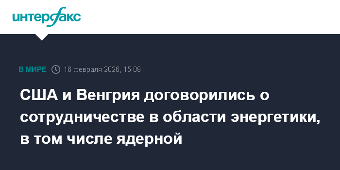 Москва. 16 февраля. INTERFAX.RU - Премьер Венгрии Виктор Орбан в понедельник заявил, что Будапешт и Вашингтон пришли к соглашению о сотрудничестве в области энергетики, включая ядерную.