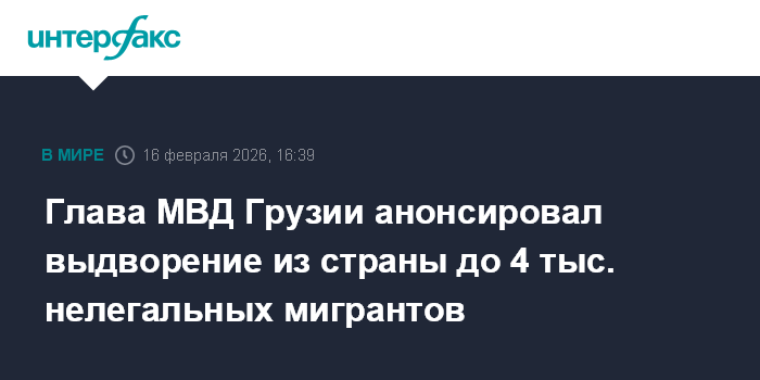 Москва. 16 февраля. INTERFAX.RU - Министр внутренних дел Грузии Гела Геладзе заявил, что в нынешнем году планируется выдворить из страны до 4 тысяч нелегальных мигрантов.