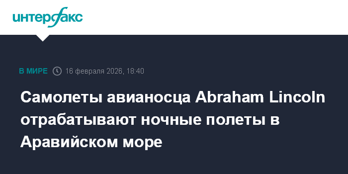 Москва. 16 февраля. INTERFAX.RU - Палубная авиация американского авианосца USS Abraham Lincoln, который находится в Аравийском море, отрабатывает выполнение ночных полетов, следует из сообщения Центрального командования ВС США на Ближнем Востоке (CENTCOM).