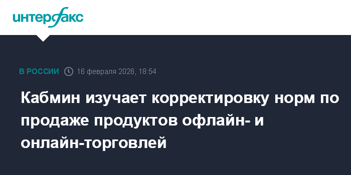 Москва. 16 февраля. INTERFAX.RU - Правительство РФ рассматривает вопрос о корректировке норм и правил по продаже продуктов питания традиционной розницей и маркетплейсами. Об этом сообщил вице-премьер РФ Дмитрий Григоренко по итогам стратсессии о регулировании платформенной экономики.