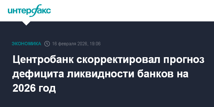 Москва. 16 февраля. INTERFAX.RU - Банк России скорректировал прогноз структурного дефицита ликвидности банковского сектора на 2026 год, теперь ждет его в диапазоне 1,9-3 трлн рублей вместо 2,5-3 трлн рублей ранее, следует из комментария ЦБ.
