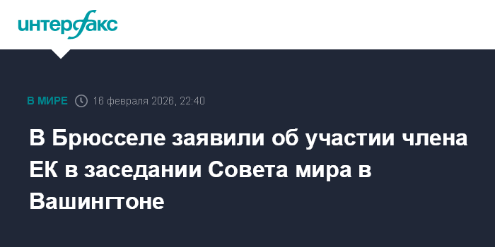 В Брюсселе заявили об участии члена ЕК в заседании Совета мира в Вашингтоне