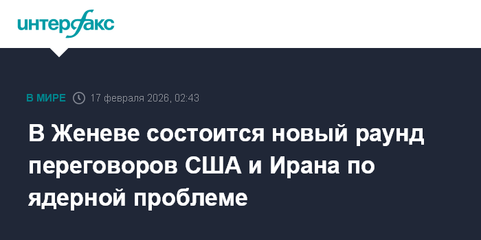 Москва. 17 февраля. INTERFAX.RU - США и Иран проведут во вторник в Женеве второй раунд переговоров по ядерной проблеме.