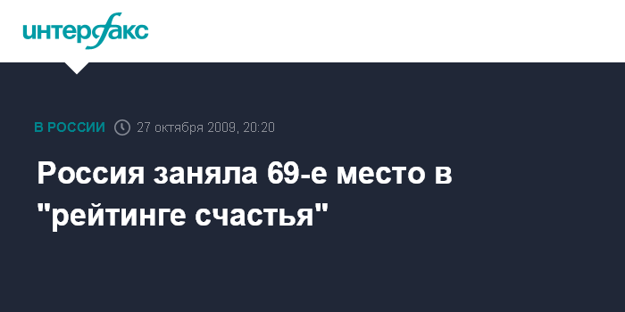 Лондон. 27 октября. INTERFAX.RU - Финляндия признана самым счастливым государством в мире. Такое заключение вынесли эксперты британского "мозгового центра" "Легатум", опубликовавшие во вторник "рейтинг счастья", в котором оценены 104 страны мира.