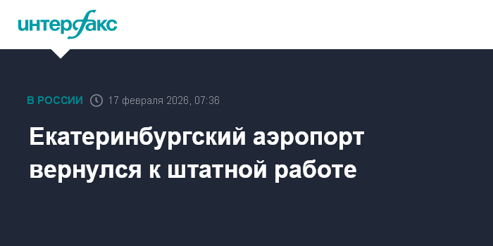 Москва. 17 февраля. INTERFAX.RU - Аэропорт Екатеринбурга возобновил работу, сообщили в Росавиации.