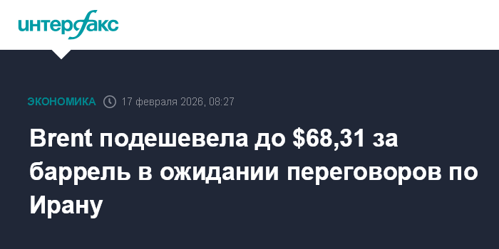 Москва. 17 февраля. INTERFAX.RU - Цены на нефть меняются разнонаправленно утром во вторник: Brent умеренно дешевеет в ожидании переговоров между США и Ираном, тогда как WTI, торги которой не проводились в понедельник, дорожает.
