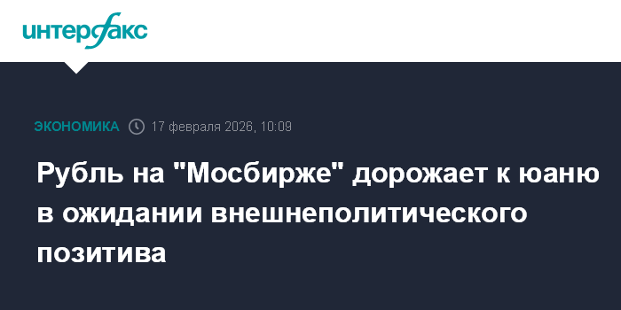 Москва. 17 февраля. INTERFAX.RU - На открытии торгов вторника на "Московской бирже" рубль подорожал к юаню при сниженной активности рынка и в ожидании внешнеполитического позитива.