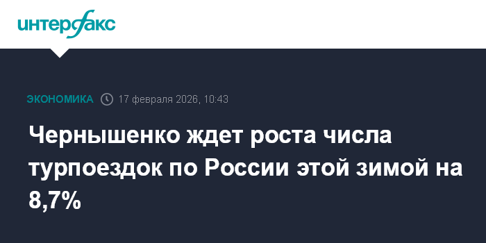 Москва. 17 февраля. INTERFAX.RU - Число туристических поездок по России за этот зимний сезон вырастет на 8,7%, до 33,7 млн, сообщил вице-премьер Дмитрий Чернышенко на совещании премьер-министра Михаила Мишустина с вице-премьерами.