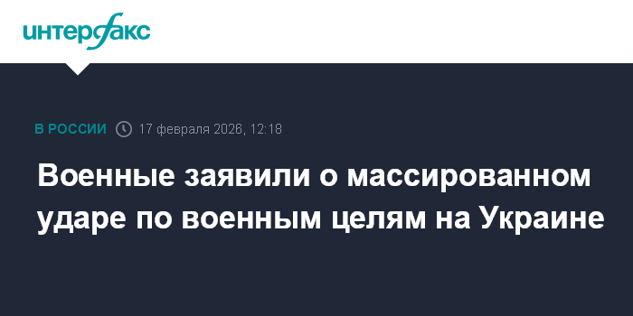 Москва. 17 февраля. INTERFAX.RU - Российские военнослужащие в течение суток нанесли массированный удар по военным целям на Украине, используемым в интересах ВСУ, заявили в Минобороны России во вторник.