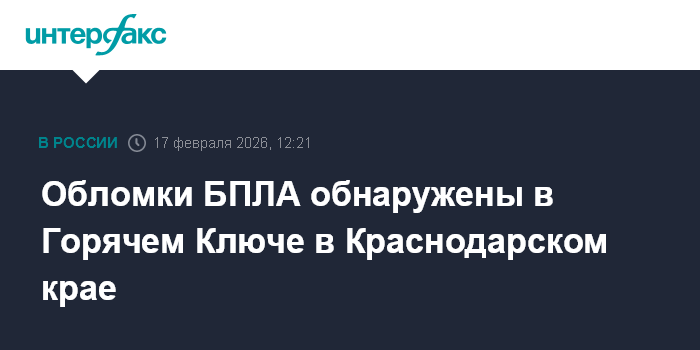 Москва. 17 февраля. INTERFAX.RU - обломки БПЛА обнаружены в городе Горячем Ключе по двум адресам, сообщает оперативный штаб Краснодарского края во вторник.