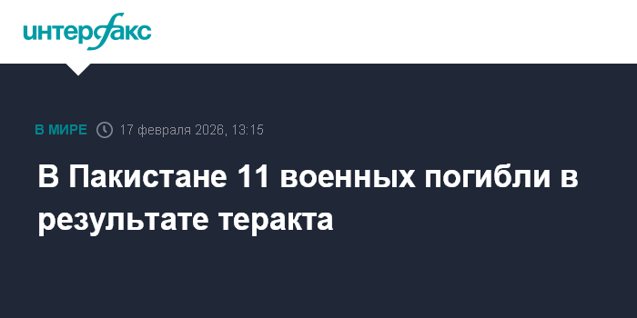 Москва. 17 февраля. INTERFAX.RU - В пакистанской провинции Хайбер-Пахтунхва в результате теракта погибли свыше десяти военнослужащих, сообщает во вторник издание Dawn со ссылкой на местные власти.