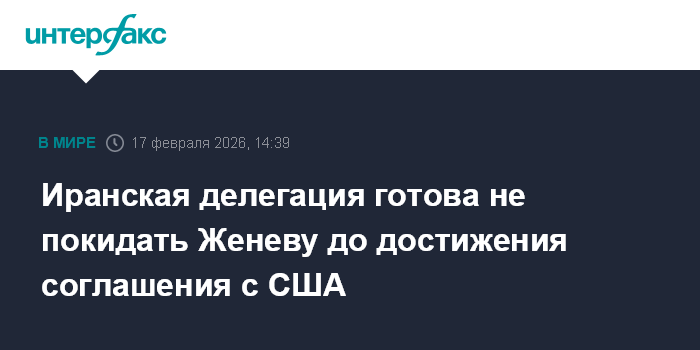 Москва. 17 февраля. INTERFAX.RU - Иранская делегация готова оставаться в Женеве для достижения соглашения, и ожидает такого же серьезного подхода к переговорам по ядерной проблематике от США, сообщил иранский телеканал Press TV.