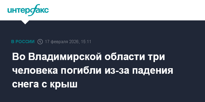 Москва. 17 февраля. INTERFAX.RU - Во Владимирской области проходят доследственные проверки по фактам гибели трех человек в результате падения снега с крыш частных домов, сообщили в региональном главке СКР.