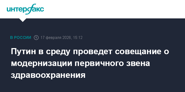 Путин в среду проведет совещание о модернизации первичного звена здравоохранения
