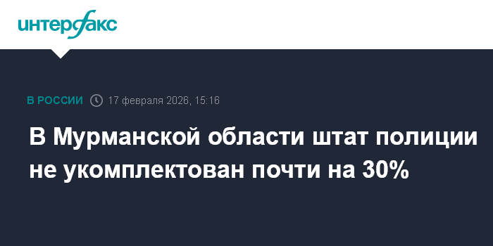 Москва. 17 февраля. INTERFAX.RU - В Мурманской области штат сотрудников полиции не укомплектован почти на 30%, сообщил в областном заксобрании начальник УМВД по региону, генерал-майор полиции Алексей Веселовский.