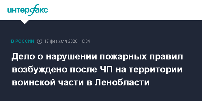 Дело о нарушении пожарных правил возбуждено после ЧП на территории воинской части в Ленобласти