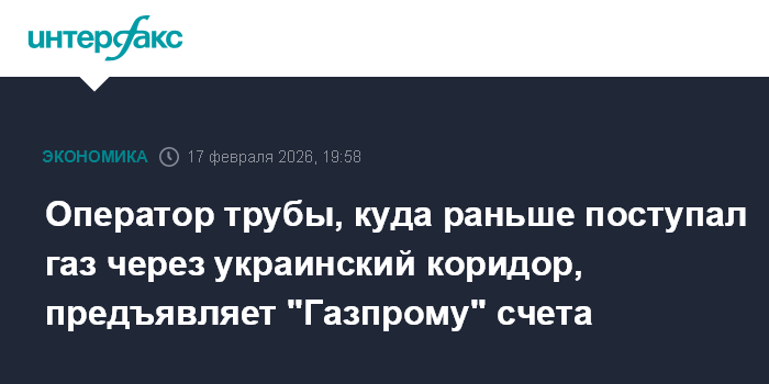 Оператор трубы, куда раньше поступал газ через украинский коридор, предъявляет "Газпрому" счета