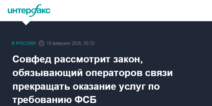 Москва. 18 февраля. INTERFAX.RU - Совет Федерации на заседании в среду рассмотрит принятый накануне Госдумой закон об уточнении обязанностей операторов связи.