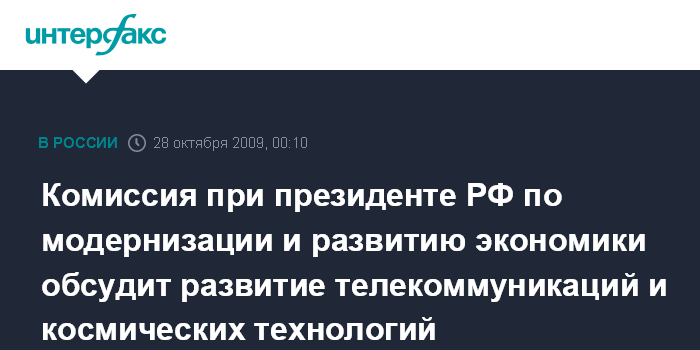 Комиссия при президенте РФ по модернизации и развитию экономики обсудит развитие телекоммуникаций и космических технологий